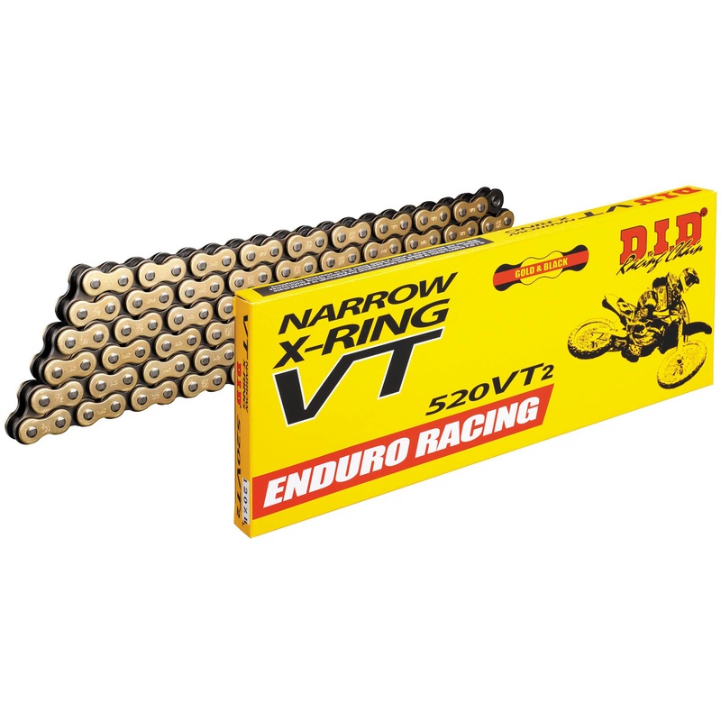 Upgraded from the 520VT2, the 520ERVT is now 2% lighter and has a 15% longer lifespan, all while maintaining the same tensile strength. Born from our original motocross chain, the 520ERVT now adds the benefits of an X-Ring. New off-road chain choice for th