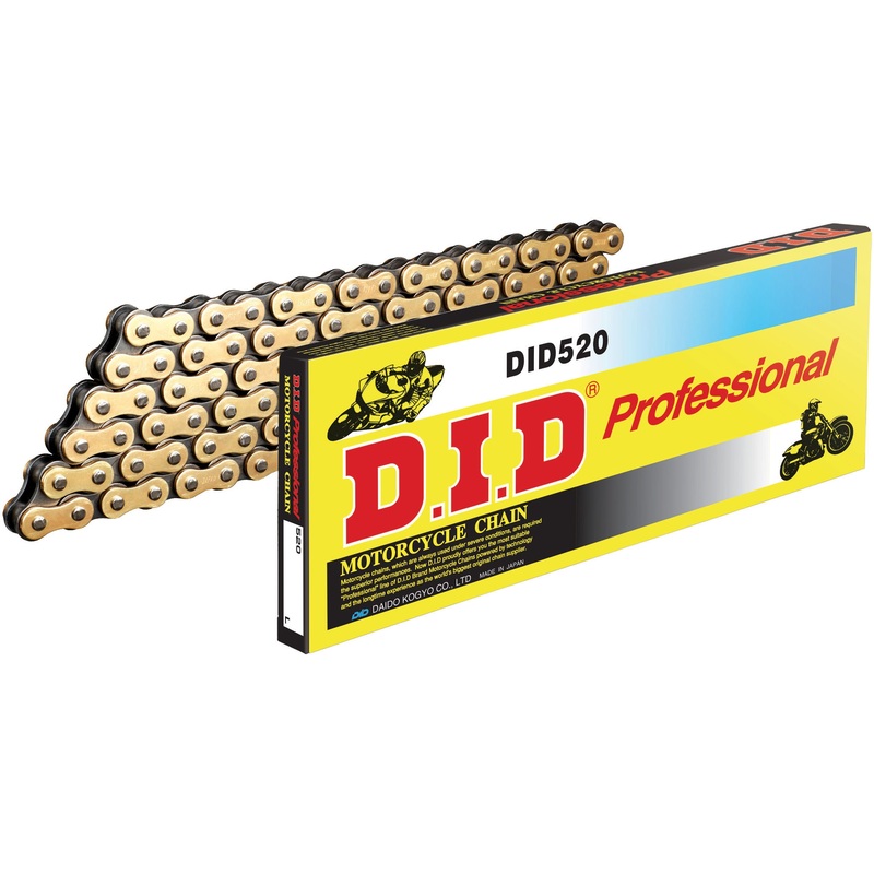 D.I.D is the number one motorcycle chain in the world. D.I.D chains are used by factory races teams from all manufacturers in race series everywhere.A non O-ring chain with fantastic durability and is extremely light weight!D.I.D uses a range of premium ma
