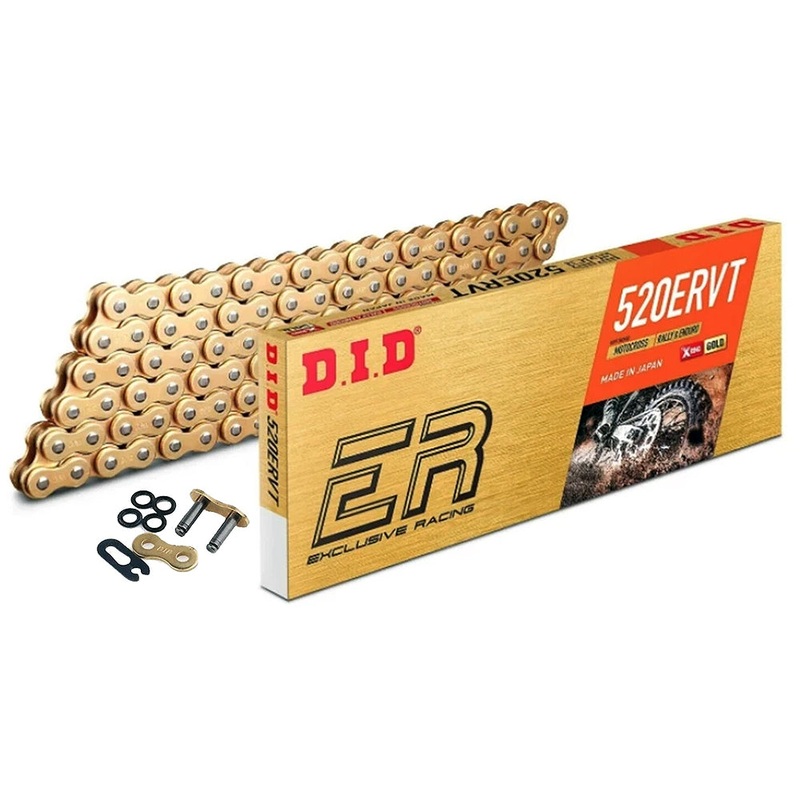 NEW upgrade to the DID 520VT2 Chain NEW 520 ERVT breaks down the concept of the original motocross chain (non-O-Ring)and adds the benefits of an x-ring More lightweight and longer chain life. By adjusting the materials, the 520ERVT is now 2% lighter and ha