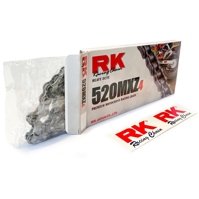 Made for the serious Motocross racer. MXZ chains feature chromoly steel construction with seamless rollers, bushings, and oversized alloyed pins for added strength. All components are heat-treated using RKs exclusive HIT (Heat Induction Transfer) process.