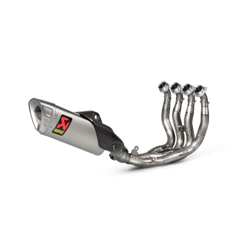 The Akrapovic Evolution Exhaust System is the flagship of the Akrapovic exhaust line. Developed and tested by Akrapovics top factory teams by riders at the pinnacle of racing, it is simply the finest performance exhaust system available. Each Akropovic exhaust is dedicated to maximizing the performance of an engine, while reducing overall weight, to optimize the handling of your motorcycle. The key feature of the Akrapovic EVO Exhaust System is the full titanium header and mid-pipes. This saves the maximum amount of weight possible compared to an OEM exhaust or even a stainless steel exhaust system.