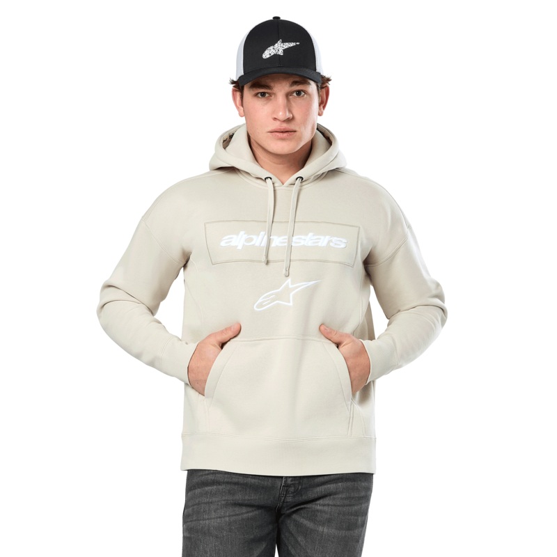 Alpinestars Exordium HoodieFeatures:Oversized fit pull over fleece hoodiePullover hoodie with body seaming and kangaroo pocketFront embroidery patch and back embroidery logoSelf lined hood, dipped drawcord tips, 2x1 rib cuffs and hemInternal main label and