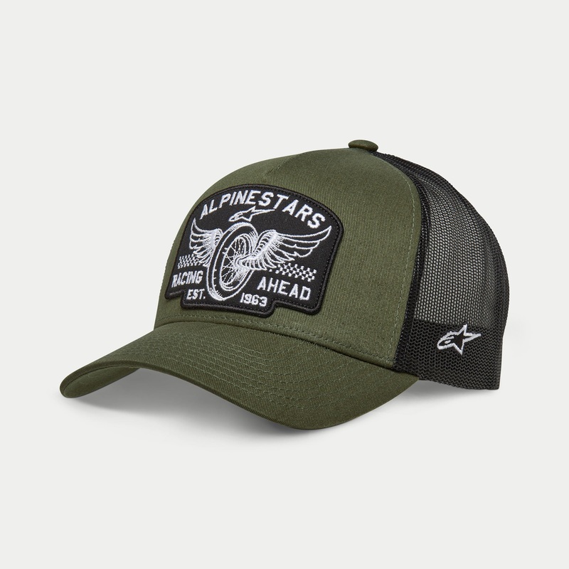 Alpinestars Heritage Patch Trucker Hat60% Cotton 40% PolyesterCurve bill with structured crownSnap backTwill front, poly mesh back fabricLarge logo embroidery patch. Side Ageless logo patch.Internal and back labeling.
