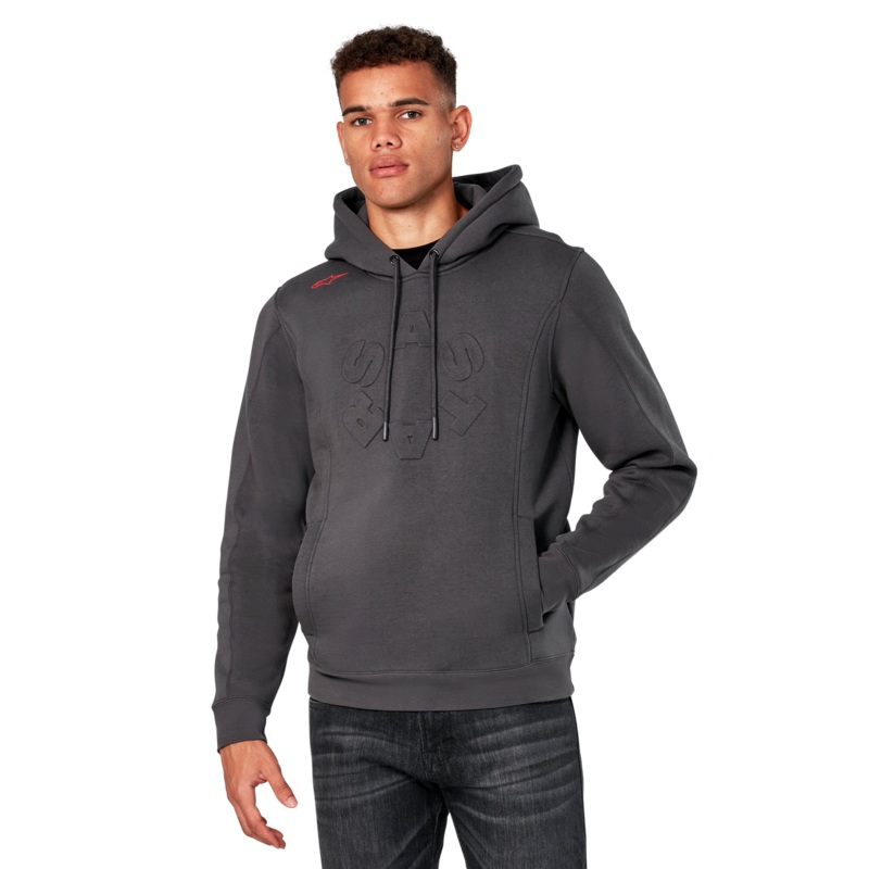 Alpinestars Substratus HoodiePULL OVER FLEECE HOODIEPull over hoodie with body seaming and welt pocketsEmbossed circle Astars word on chest. Logo prints at shoulder and back.Self lined hood, dipped drawcord tips, rib cuffs and hemInternal main label and ex