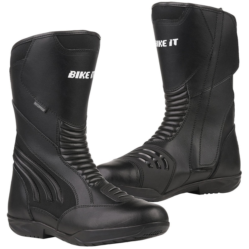 Bike It Burhou Mens Touring Boot Black Introducing the Bike It Burhou Motorcycle Boot, full-length sports touring boot. This all-seasons, waterproof touring boot offers comfort, style and protection for all-day, any weather riding. Whether you ride an adve