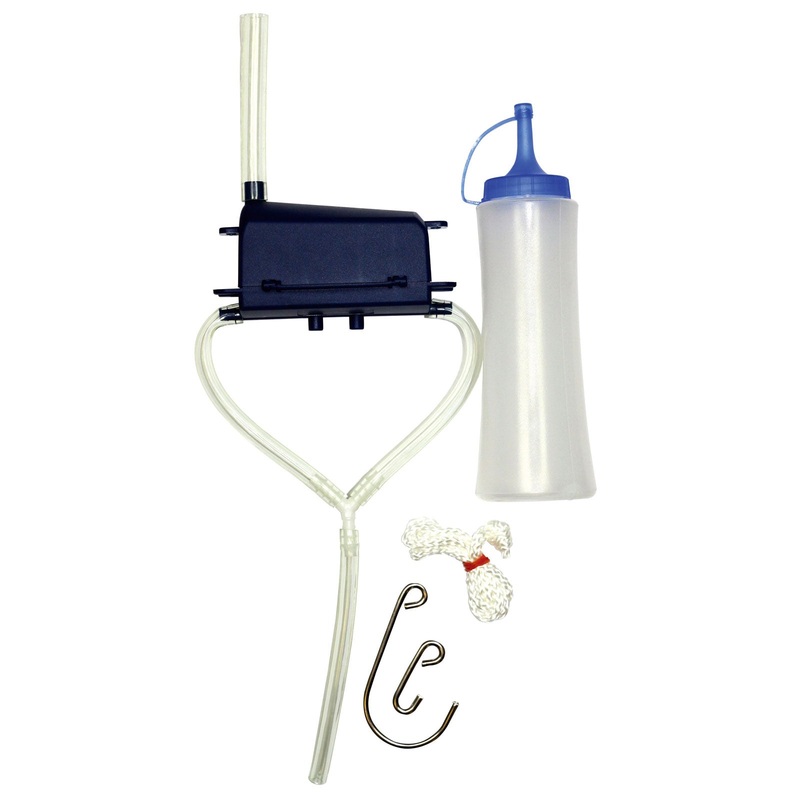 Includes cord and hooks enabling attachment to bike whilst in use, and plastic drainage/cleaner bottle.
