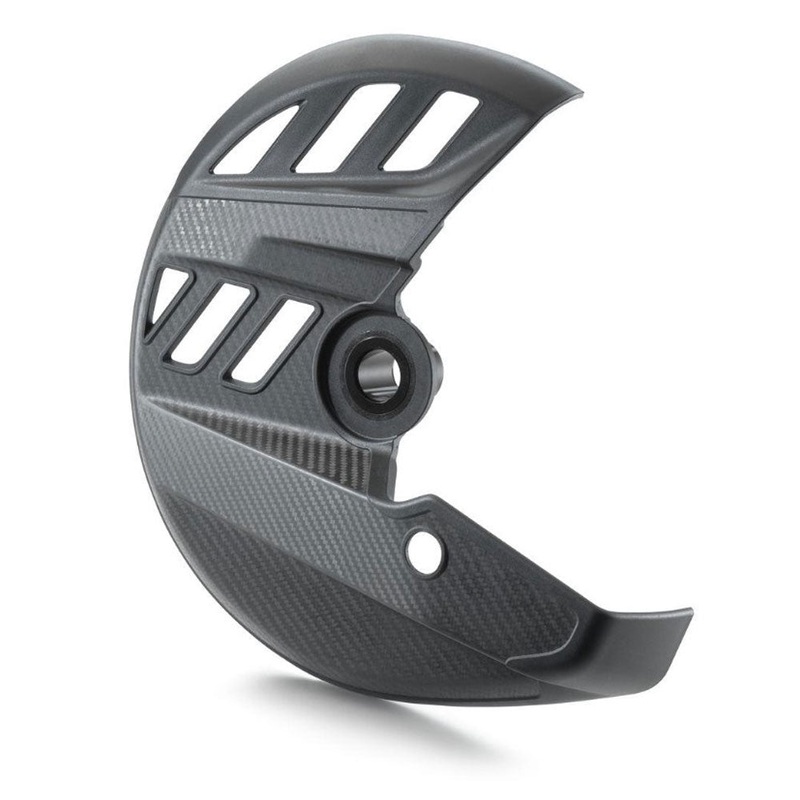Factory Racing Carbon Front Brake Disc GuardHusqvarna/KTM 2015-202479109961100Extremely lightProtects the brake disc from stones and other solid obstaclesCentral adapter replaces the spacer sleeve on the wheel axleAllows tire changes, brake service etc. wi