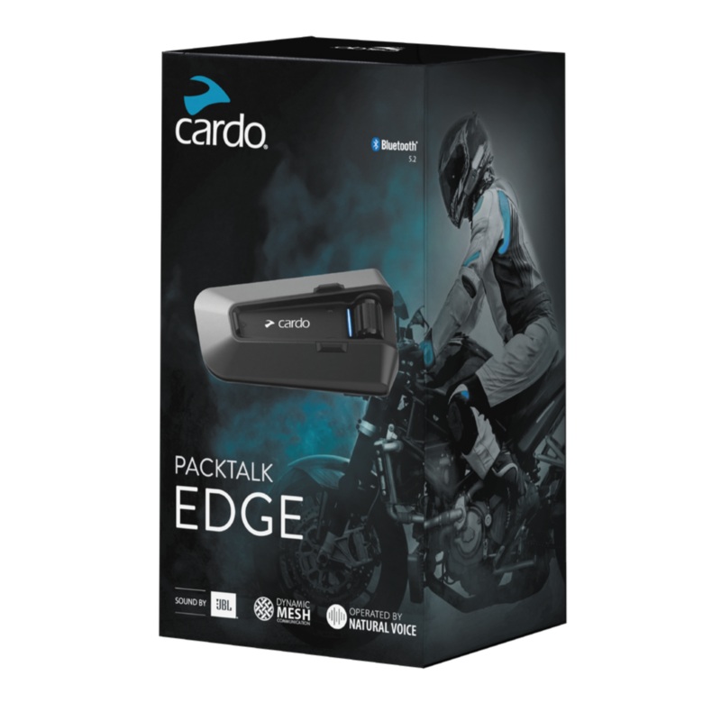 Cardo PackTalk Edge SingleHeadset The Cardo PackTalk Edge Headset is the successor to the wildly popular Cardo PackTalk Bold JBL Headset. With several new features, such as Air Mount and Over-the-air software updates, as well as updated features, like the