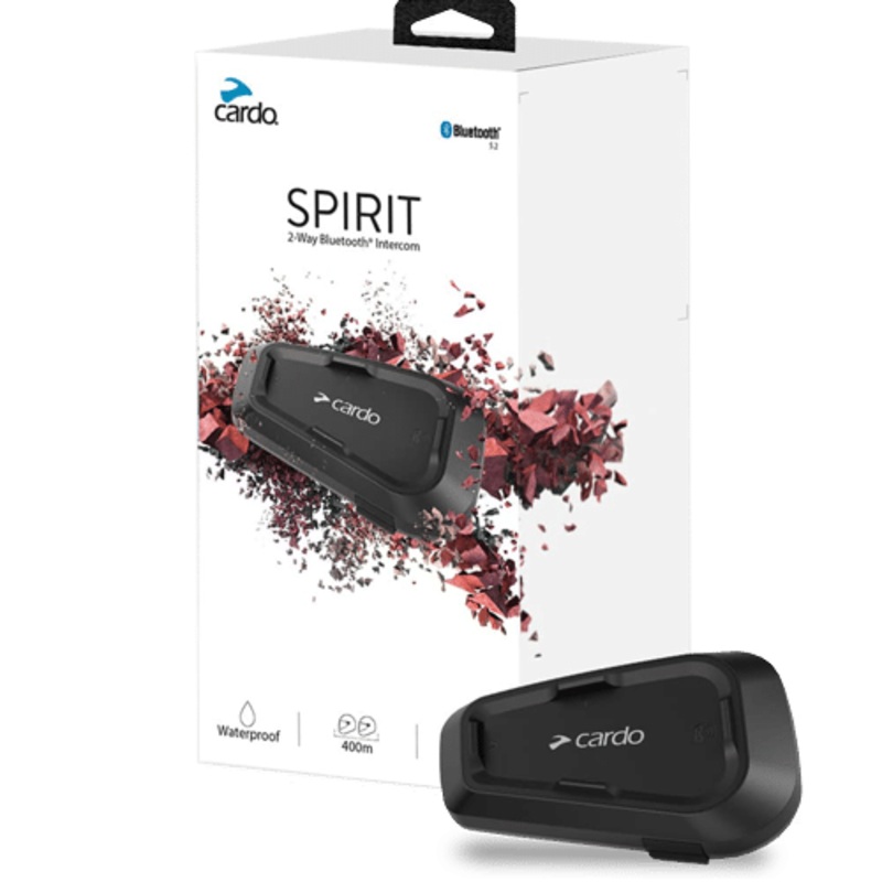 Scala Rider Cardo Spirit Single IntercomThe Cardo Spirit Headset is an ideal choice for riders looking for a no-frills, solo or 2-up Bluetooth communication device. With two channels for connecting to a phone and GPS unit, youll be able to listen to music