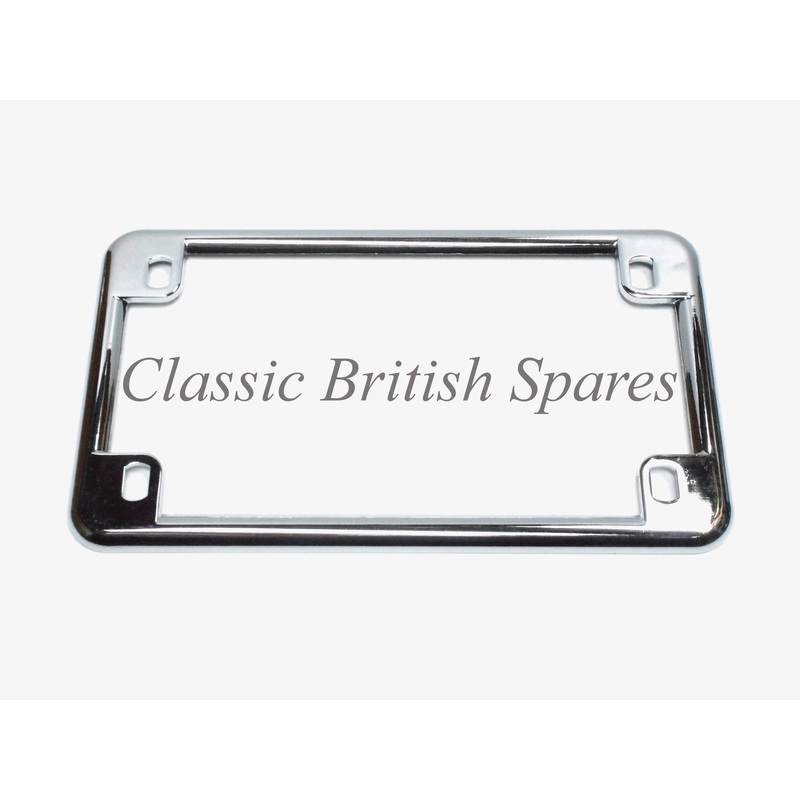 New EMGO Chrome Classic Universal Motorcycle License Plate Frame. This is the “cleanest” looking motorcycle license plate frame we have seen! This will “tidy” up your bike in no time. Measures 7 1/4″ in length and 4 1/4″ in Width. This frame will fit most smaller motorcycle license plates from approx 1969 & on. Great foo many brands of motorcycles from Triumph, BSA, Honda, Yamaha, Honda, & Much more. Please review the Measurements abouve to ensure that this part will work for your application.*****Please note that this license plate frame is chrome and not black. May fit other Brands that are not listed abouve!*****Made by EMGOO.E.M Part number is 86-42600