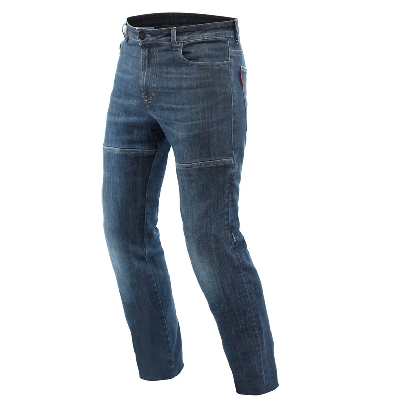 The Dainese Denim Blast motorcycle jeans in stretch fabric are designed to provide protection and an ergonomic fit, through their regular cut and soft Pro-Shape 2.0 protectors with EN 1621.1 certification on the knees. The height of the protectors can be a
