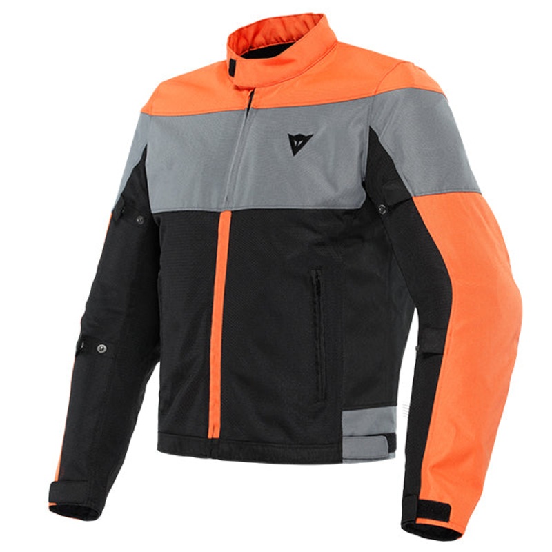 Dainese Elettrica Air Textile Jacket Black Orange The mens Elettrica Air Tex motorcycle jacket is a versatile, all-season garment that combines protection and ease of use. Constructed in resistant, anti-abrasion fabric, it allows for safe, comfortable ridi