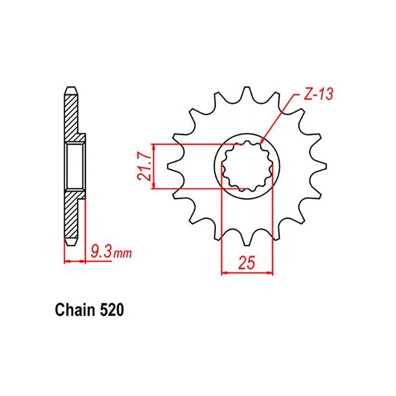 13 Teeth, Front Steel SprocketSuit 520 Pitch Chain. Precision machined for enhanced power delivery and efficiency.