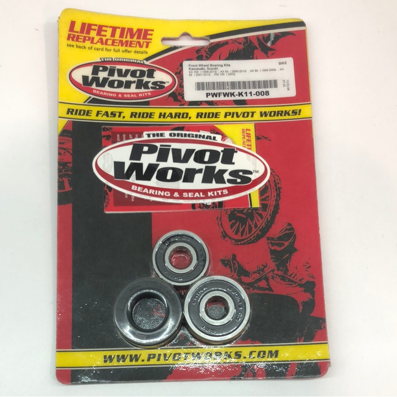 PIVOT WORKS FRONT WHEEL BEARING KITManufacturer Part Number: PWFWK-K11-008FITMENT :2008-2016 KLX 140 1998-2016 KX 100 2000-2016 KX 651998-2000 KX 802001-2016 KX 85