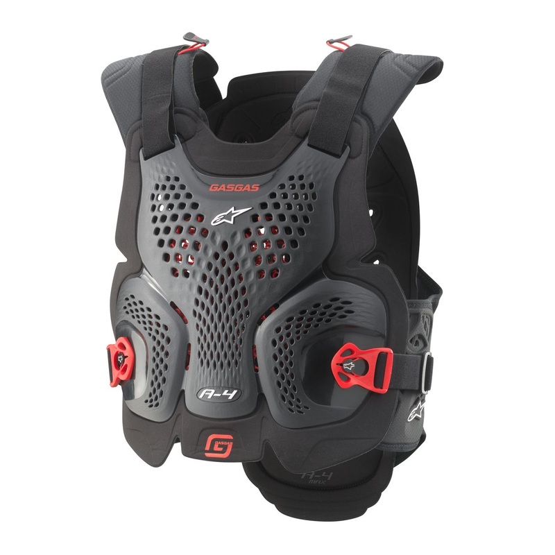 GasGas A-4 MAX Chest Protector by AlpinestarsLightweight, ventilated body protectorThree-dimensional shapeOptimized wear comfort35 % polypropylene / 34 % thermoplastic polyurethane / 20 % EVA / 8 % polyester / 3 % other3GG23001350x