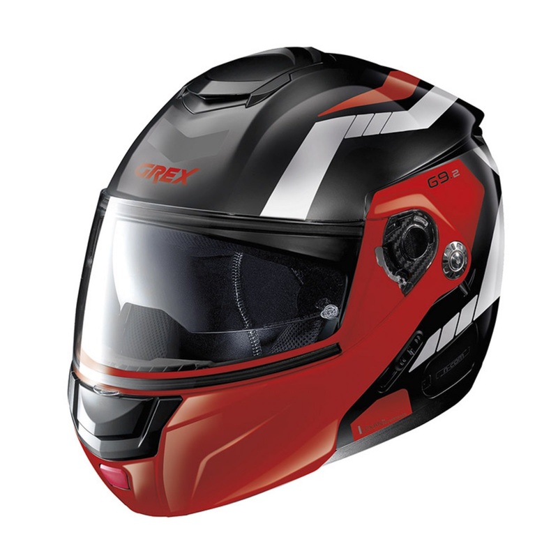 Grex G9.2 Steadfast N-Com 017 Flip Front Helmet G9.2 is Grexs full face flip up helmet, designed for scooter and motorcycle use. Thanks to its compact size, ideal comfort and the guarantee provided by Nolans experience, it is considered the quintessential