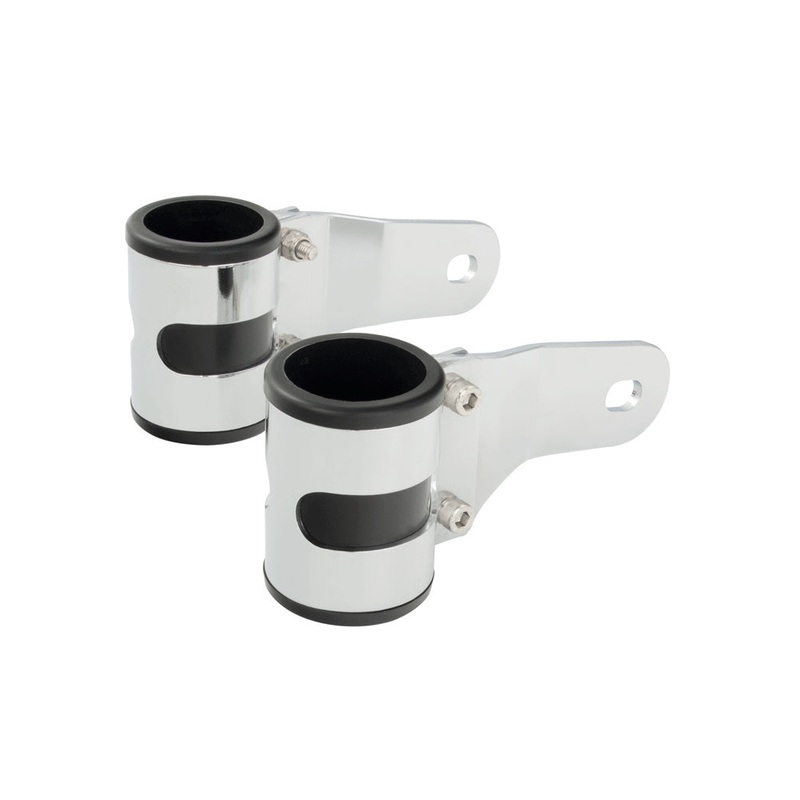 Premium quality headlight brackets featuring a chrome finished clamp and bracket.