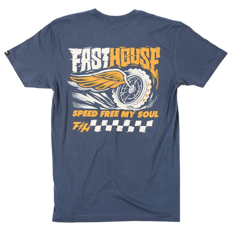 Check out the”High Roller” tee incool Indigo blue.Theflying wheelgraphic makes this an instantfavorite in your tee rotation.
