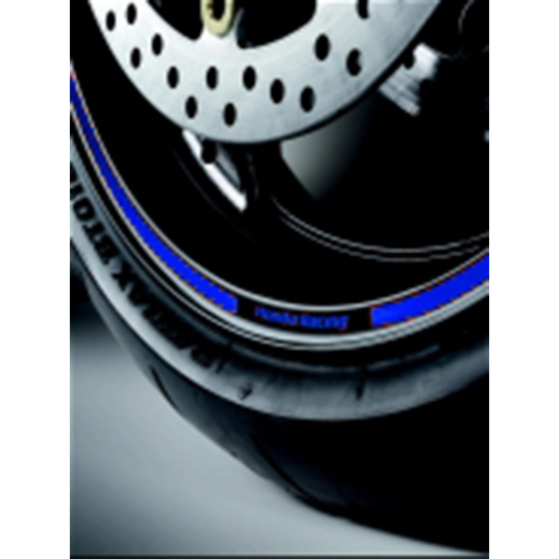 Contains round-shaped 3-piece strips for easy application and a perfect fit around the circumference of two 17-inch wheels. Optional Honda Racing logo included.