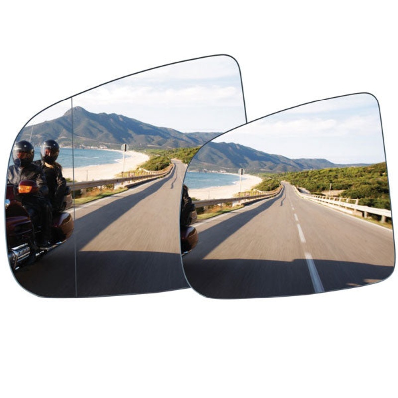 Picture is for representation only, the shape will vary to suit the fitmentAspheric motorcycle mirror as easy to use retrofit kitSafer View Mirror Lens Upgrade help to eliminate dangerous blind spotsEasy mounting, fits to your original mirror glass (specia