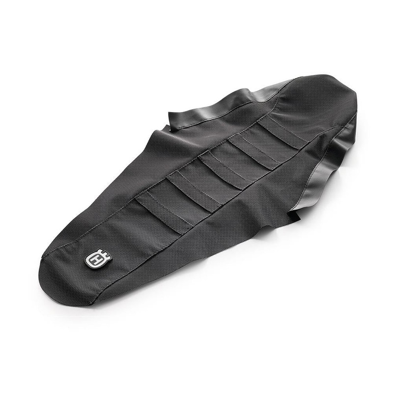 Husqvarna Factory Seat Cover with RibsUHP1607020*This is a special order item only. PleaseCONTACT USto see availability*The cross-stitched ribs provide ultimate grip to keep you from sliding back on the motorcycle when exiting turns. For standard height se