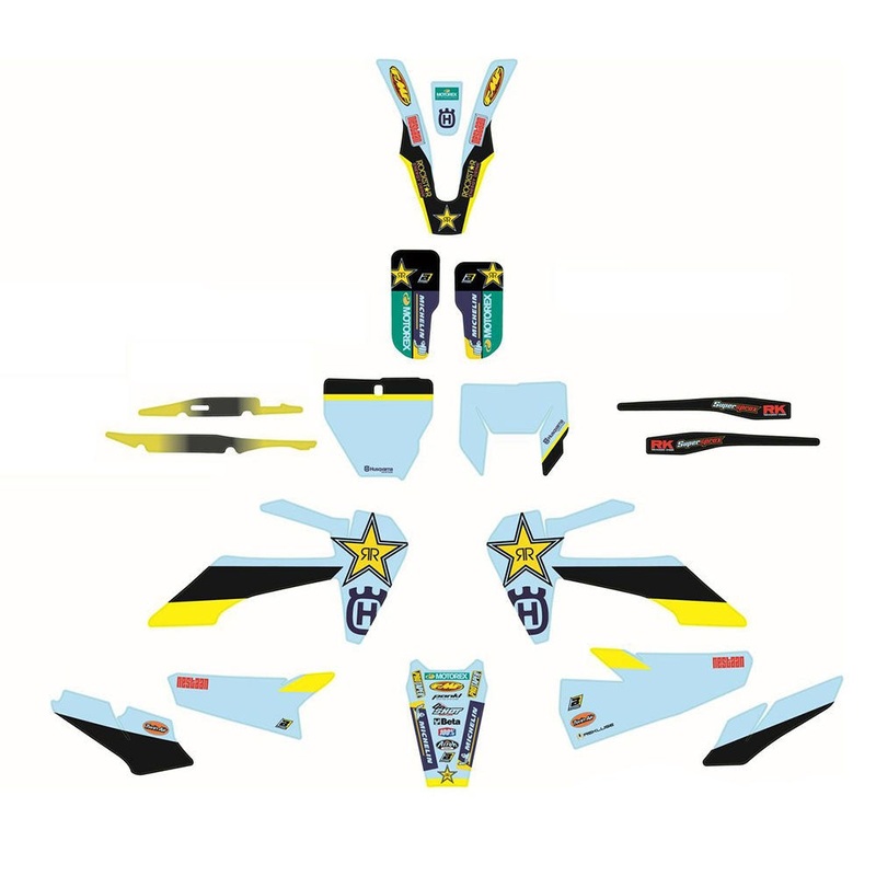 Husqvarna Rockstar Factory Graphics Kit26208990000*This is a special order item only. PleaseCONTACT USto see availability*Made of the highest quality materialsVisual highlightPerfect fitPersonalize the look of your motorcycleDesigned to completely change t