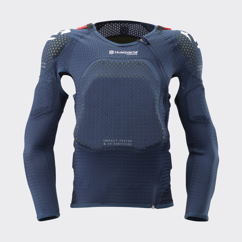 Husqvarna Youth 3DF Airfit Body Protector by LeattLightweight, high-level body protector for kidsFinely ventilated PE fabricMesh insertsChest, back, shoulder and side protectionPreformed shoulder and elbow designPreformed shoulder and elbow design for adde