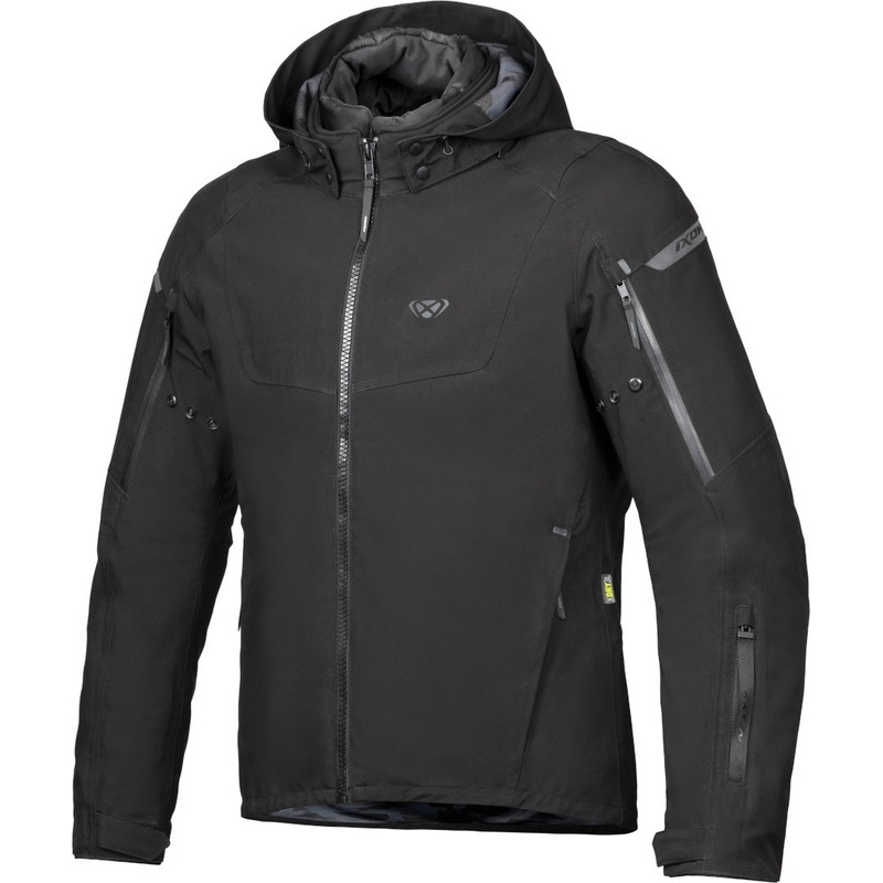 Ixon Burning JacketTechnical and comfortable laminated jacket with a fashionable streetwear look.Features:Outer material: XDRY3LVentilation: 2 bicep zips with direct ventilation, 2 air vents in the backCollar: classic collar with neoprene liner + high ther