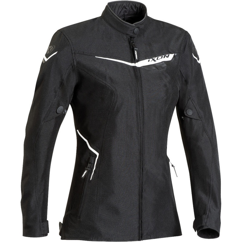 Ixon Slash Lady JacketThe Slash Ladies Motorcycle Jacket is made of waterproof 600D polyester and keeps you warm and dry on colder days.Features:600D polyesterWaterproof and breathable membraneFully removable thermal liningClassic collar with piping on bor