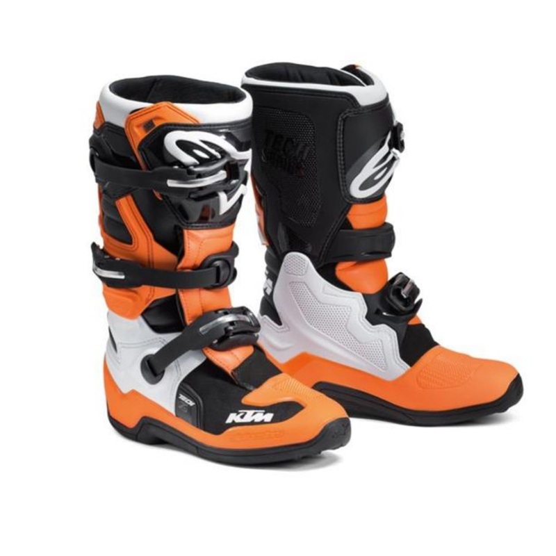 KTM Kids Tech 7S Motocross Boots Anatomically profiled offroad boots for kids Abrasion-proof, tear-resistant microfiber material Abrasion-proof, impact-resistant TPU protectors on shin and calf Stainless steel heel and toe protection Sole with anatomically