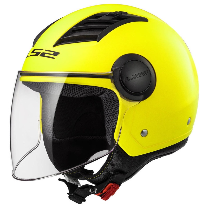 Lightness and protection come together with an alternative and very personal design in the new open face model of the LS2 family, Airflow Matt Hi-Vis Yellow Long Open Face.