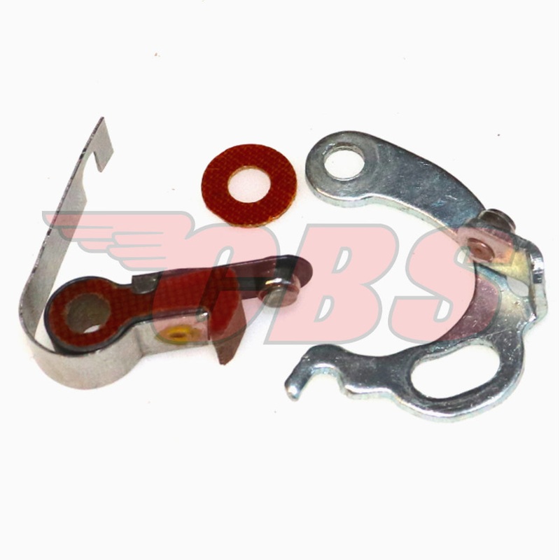 New Lucas 18D2 distributor replacement points. This contact breaker set was used on original Lucas 18D2 distributors as fitted to many early Triumph, BSA and Norton models (B31, 3TA, 5TA, T90, etc) – May fit other models not listed.. Replaces part number 425219. Check your parts book to ensure the best fitment.