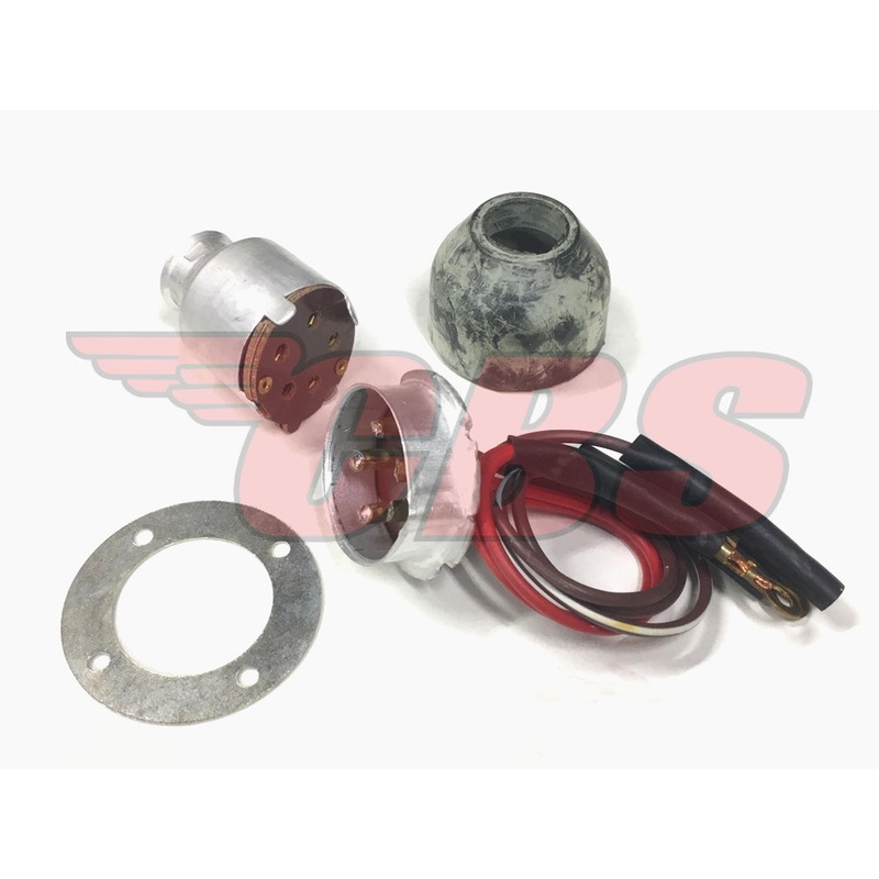 This set comes with everything you need to get your Lucas quick detach headlight back in working order. Included is a socket, plug, connectors, rubber and more. Works with most Lucas quick detach headlights as fitted to many early BSA, Triumph, Norton, Matchless and AJS motorcycles up to the 1960’s.Check your parts book to ensure the best fitment.
