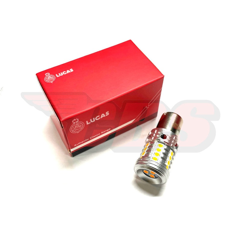 For sale today in this listing are new Lucas LED turn signal light bulbs. Bulbs will fit original Lucas turn signal units and also EMGO turn signals. Bulbs are direct replacements from original bulbs. Bulbs features 2-pins and are "push and turn" that are