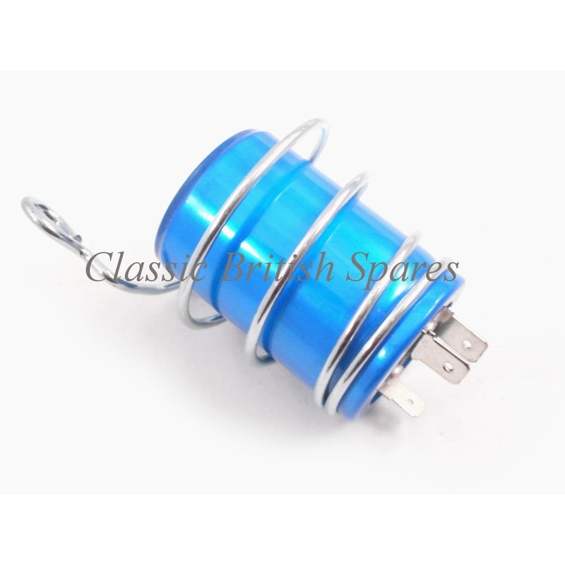 New Top Quality Lucas Type 2MC Capacitor With Mounting Spring. This is a very high quality capacitor that is made on new 2017 tooling. This capacitor is also know as the "battery eliminator", to achieve a battery-less system you must wire this capacitor in