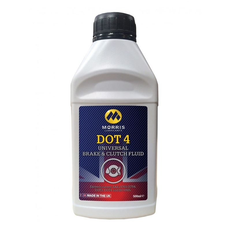 Morris Brake Fluid is made from high molecular weight polyalkylene glycol ethers and polyalkylene glycol ether borates, to give a high boiling point fluid of DOT 4 quality. The product is blended with special additives that prevent fluid oxidation, rust an