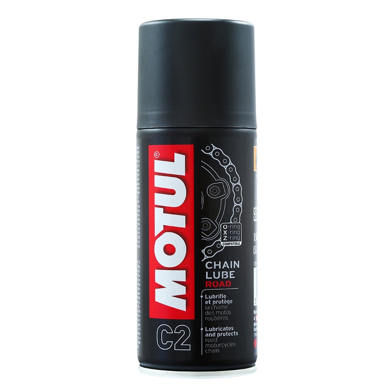 A colorless water and rust resistant adhesive spray that coats motorcycle chains even at high speeds, reducing high speed splatter. Especially recommended for very fast motorcycles, Chain Lube Road reduces friction and increases chain durability.Reduces ro
