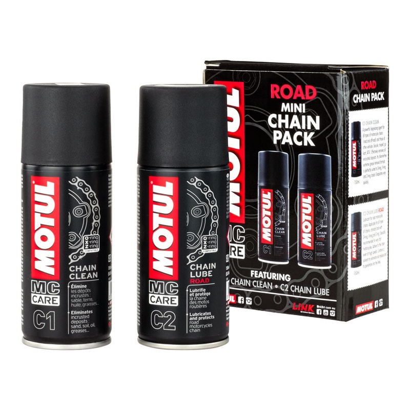 Motul Mini Chain Pack - RoadStay on top of your chain maintenance with this great value kit. Includes everything required to keep your chain performing at an optimum level, maximising your chain's life expectancy. Chain Clean 150ml - Cleans all types of mo