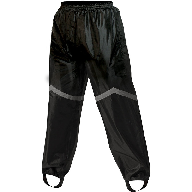 SR-6000 Rain Pants 100% waterproof Soft Polyester outer shell with PVC backing Pants feature elasticized waist band and cuffs Oversized zipper gussets and elasticized boot stirrups Reflective striping on pants for night visibility Exclusive 2 year Warranty