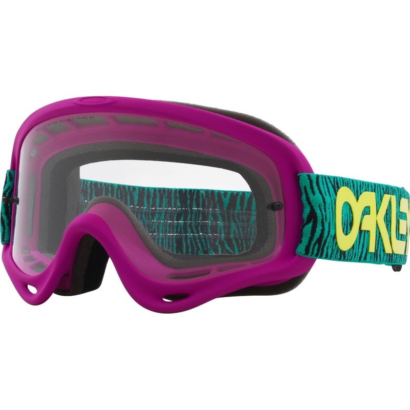 Oakley O Frame B1B Celeste Bengal Goggles With Dark Grey LensThe Oakley O Frame MX goggle offers a blend of classic design and modern performance, making it a reliable choice for motocross enthusiasts. Its flexible, durable frame provides a comfortable, sn
