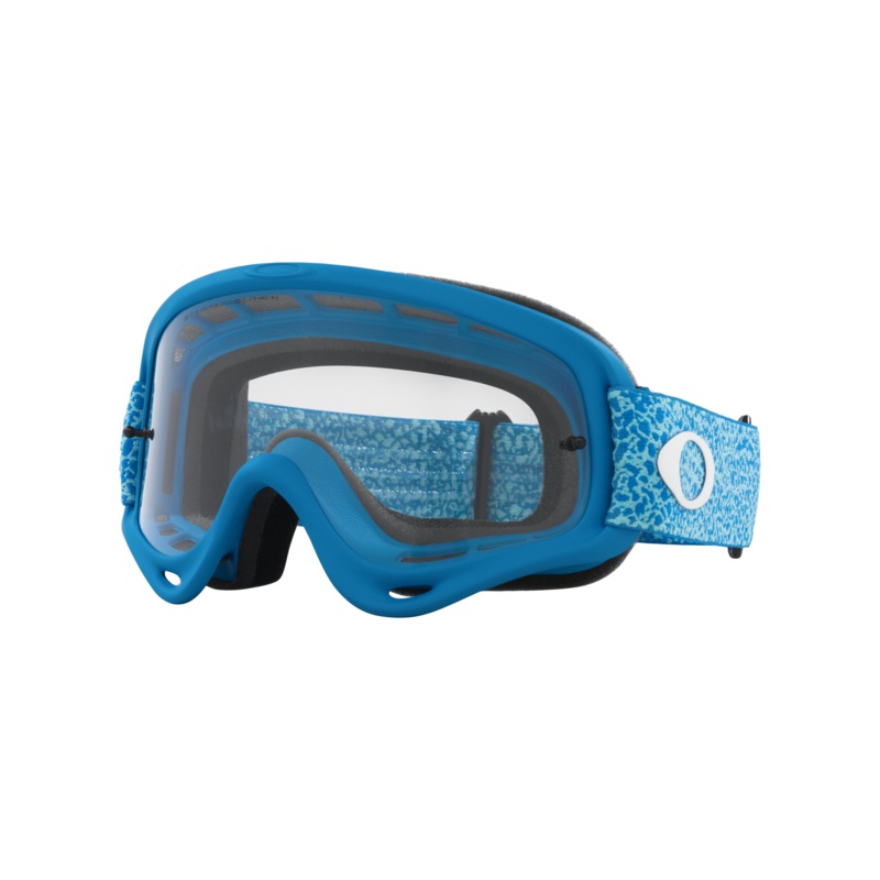 Oakley O Frame Blue Crackle MX Goggles - Clear LensThe Oakley O Frame MX goggle offers a blend of classic design and modern performance, making it a reliable choice for motocross enthusiasts. Its flexible, durable frame provides a comfortable, snug fit and