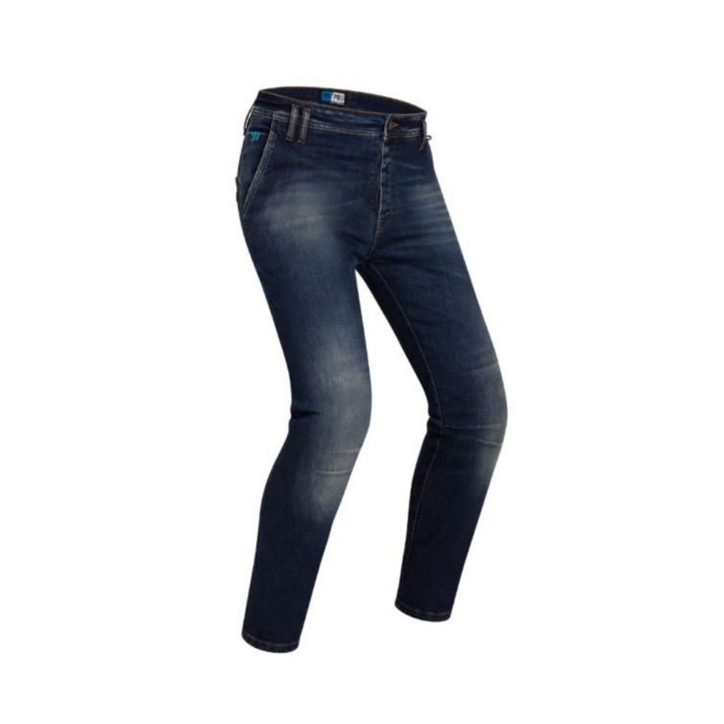 PMJ Russell Jeans Blue T-Stretch Twaron Single Layer Technology. PMJ has developed a new technology that allows the production of fabric with Twaron fibres woven with Denim. The result is a single layer fabric which does not need the Twaron fabric lining,