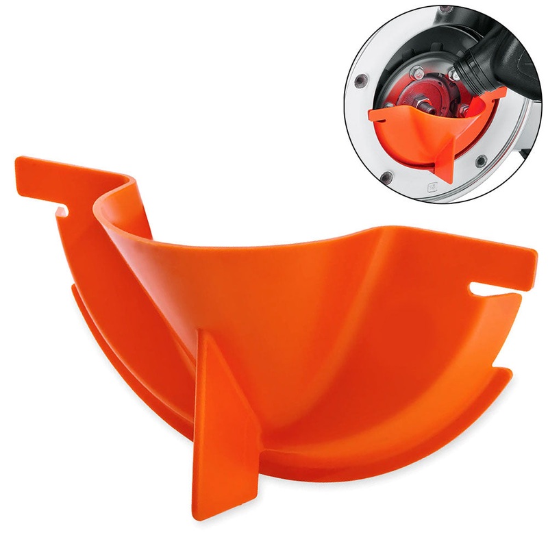 This re-usable funnel makes it easy to add oil to your primary cavity. The funnel simply snaps into the derby cover opening to permit hands-free filling on the specified models. Convenient tab allows you to place the funnel in position with one hand, and t