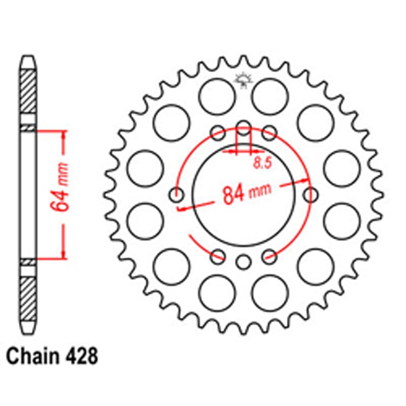 45 Teeth, Rear Steel SprocketSuit 428 Pitch Chain. Precision machined for enhanced power delivery and efficiency.