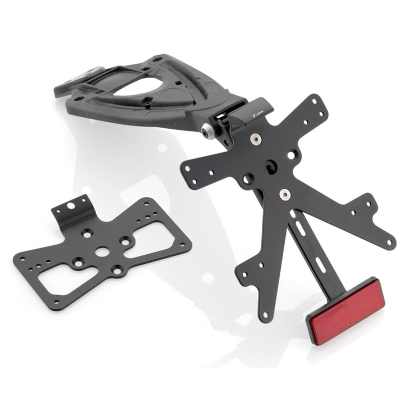 Rizoma’s beautiful License Plate Supports are machined from billet aluminium to their exacting standards. All kits are bike specific and ship with a USA sized plate frame.
