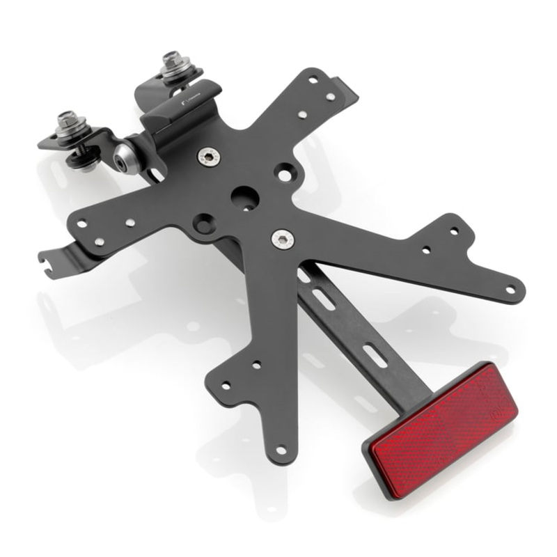 Rizoma’s beautiful License Plate Supports are machined from billet aluminium to their exacting standards. All kits are bike specific and ship with a USA sized plate frame.