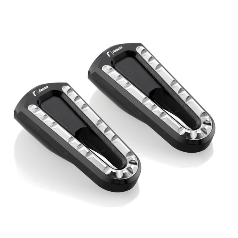STREET pegs are made from anodized billet aluminum and are the perfect match for OEM rearsets. With “Retro Style” design, their toothed pins provide optimal grip and the contrasting colors intensify the aesthetics. The hollow body makes them lighter and allows easy removal of any dirt and water. Rizoma Street pegs are TV certified.