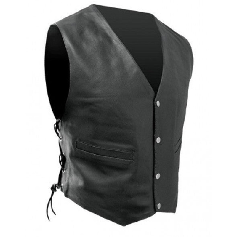 Rjays Lace-Up Leather VestA grade drum dyed cowhide leather.Two front fob pockets.Brass press stud closure.100% cotton lining.