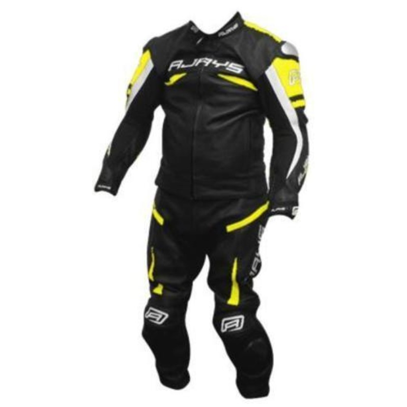 Rjays Samurai III 2Pc SuitBeautiful matte finished leather, double stitched suit100% A-Grafe drum dyed race weight leatherPre-curved arms and legsCE Level 2 approved, moulded plastic and aluminium reinforced adjustable shoulder Armour, CE Level 2 approved