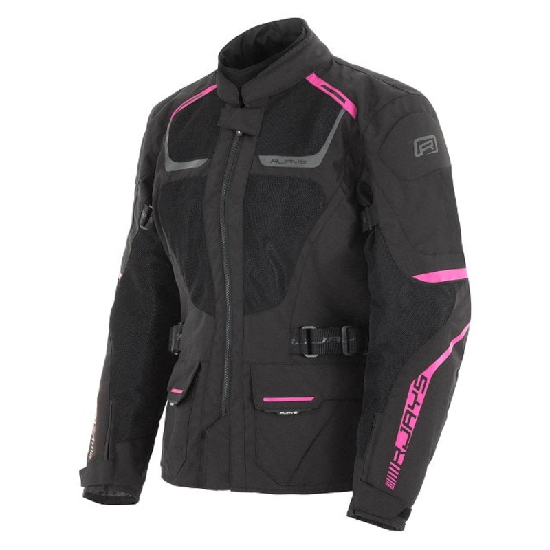 Rjays Women's Tour Air 2 JacketOuter Shell: Polyester 450D & Abrasion resistant mesh.CE Armour in the shoulders & elbows.EVA foam rubber back pad.Removeable waterproof & breathable liner (15,000mm / 5,000mm)Removeable Thermal liner 100gMulti panel Poly mes